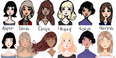 #oc #monicaspencer #saradavidson #characterdesign #flatcolor #flatcolour #group #headshots #kellyhayes #ocs #originalcharacter #originalcharacters #cassidyjones #monispencer #cassijones #faewilliams