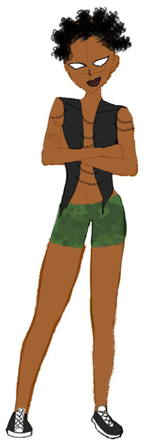 Personality: Very dark sense of humor, very selfish, cares about very few people, outgoing and loud, oftentimes obnoxious. She's blind and because of that most people tend to underestimate her. She's very bad at manipulation and picks a lot of fights, which gets her into trouble a lot.