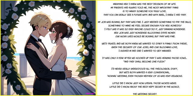 I've been lurking in this community for so long and wanted to try creating one myself, but finding images that match my imagination is so hard. And the thought of having to send DMs to image owners asking to use their work for my kink pains me so much. But with the advent of AI technology, everything has become easier. So, this is my first time creating a caption. I used AI to fix my dogshit grammar too.