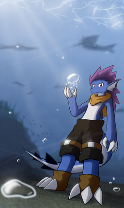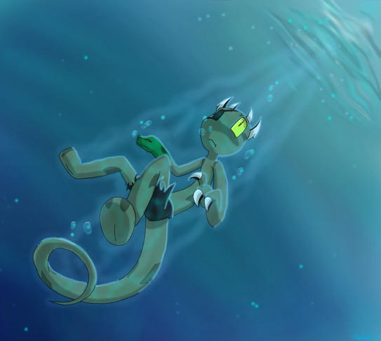 You did excellent on getting a sense of this being underwater. I love the bubbles too. The plants look really cool. The whole underwater atmosphere was done well, you must spend a lot of time underwater, or else looking at pictures of stuff underwater. I wouldn't know the first thing to do to make something look like underwater atmosphere.