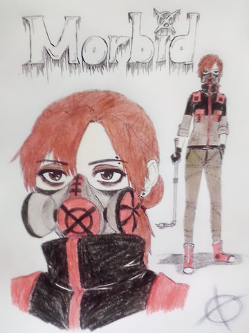 Appearance: Half skull Half face,Dyed purple hair, green eyes, Paintball helmet with Mirrored lens