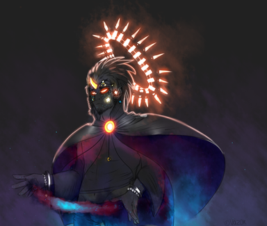 I love the subtle glow you put around him, and all the dark colors of his armor and skin contrasting against his bright, blue eyes.