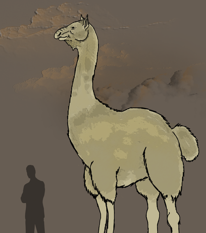 A wooly browsing azhdarchid from an alternate Pleistocene. It has lost its wing finger entirely sometime in the distant past and is left only with a large rear hoof as a vestige. It has a thick coat to protect against both predators and the biting cold of the ever-chilling climate of North AmericaRelated content