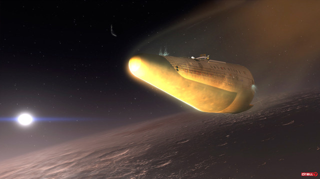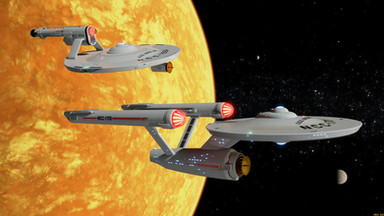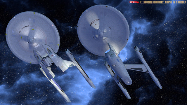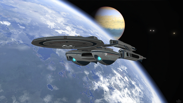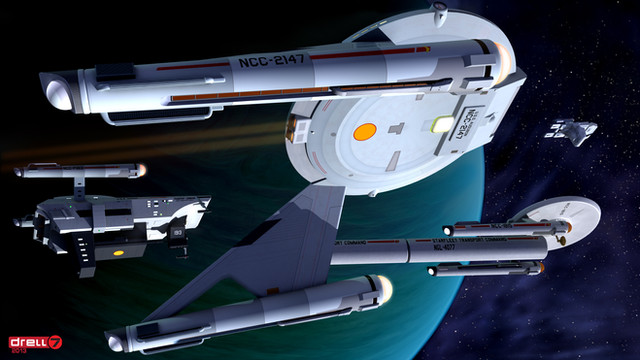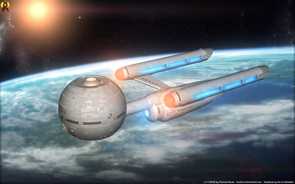 A Ranger class Scout, exploring a new solar system, dispatches a probe. Photorp effect by davemetlesits.Original design by FASA, redesign for TOS era by arcas and Drell-7. Modeled and rendered in Lightwave 10.