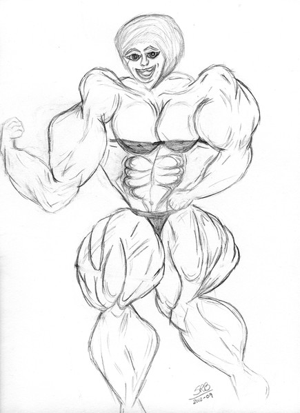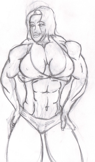 Deciding to become a bodybuilder herself, Mrs. Braun soon became obsessed with pumping heavy iron, adding on pound after pound of muscle and has transformed herself into a freaky-big and powerful, 197 pound muscle-woman who has won the heavyweight division in several local bodybuilding contests. Now almost crazed by a continuous desire to pump iron and increase her muscle-size even more, Mrs. Braun's newest goal is to compete against MALE bodybuilders, not only on-stage in female vs male pose-downs, but on the wrestling mat, in grueling tests to determine true muscle supremacy. "I'm more muscular and ripped than any man in my weight-class, and I know I can out-flex the guys on-stage and out-wrestle them on the mat!" Besides shocking her son with her outrageously buff bod, Mrs. Braun has announced that next month she will fly to France to compete in an inter-gender bodybuilding contest on the Riviera, and that she has been accepted into the Bodybuilders Wrestling League, where she will wrestle a 21 yr old male college bodybuilder and wrestler (almost her son's age!) in a no time limit, submissions only match, in which both gladiators will wear only minimal bikinis and will wrestle before a small elite audience of wealthy muscle voyeurs, and bodybuilders of both genders.