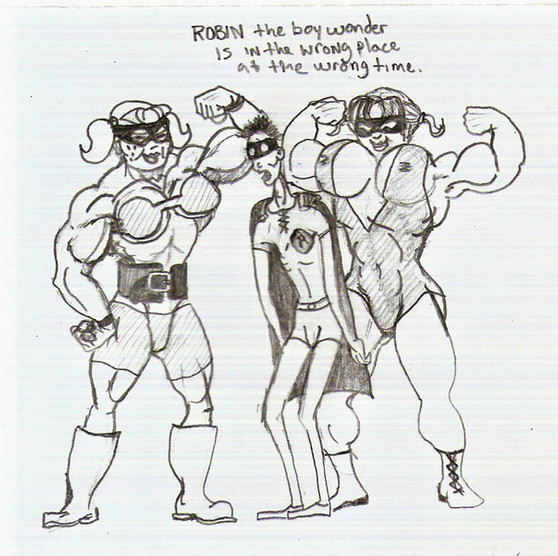 Great work, thomas1850. Love the way she shows off her muscles to the boy. Here is my take on the scene: