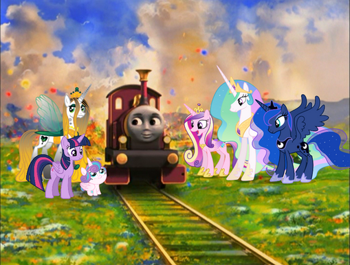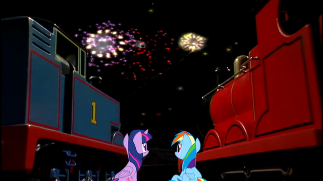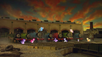 (The Mane Six gallop off into the sunset, following Thomas as the screen fades to black. THE END)