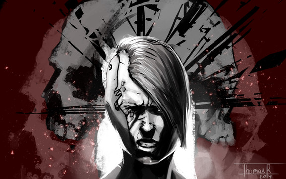 De goût personnel, un visage plus affiné (au niveau de la mâchoire, très carrée sur ton travail) aurait été plus agréable à regarder. Mais ça lui donne un côté inhumain collant bien avec l'aspect dérangeant du reste de l'image