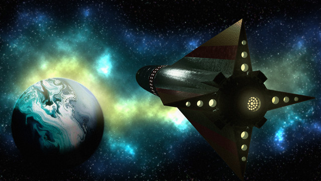 View from below, some funky reflections going on, but that just adds to the cheesy retro SciFi feel.Daz 4.8 3DL