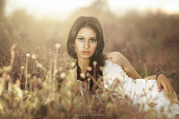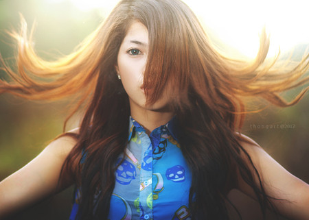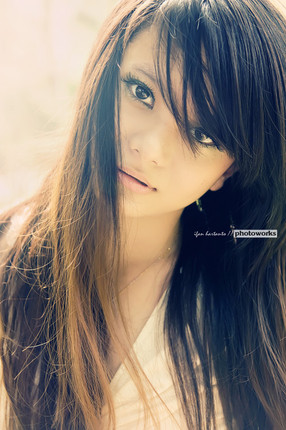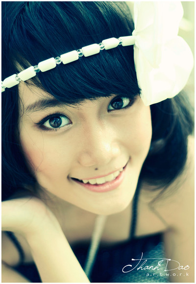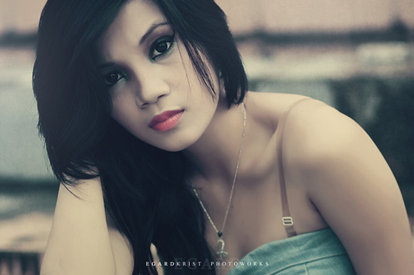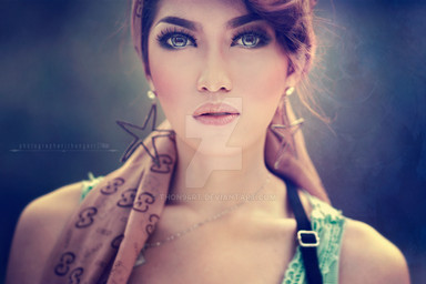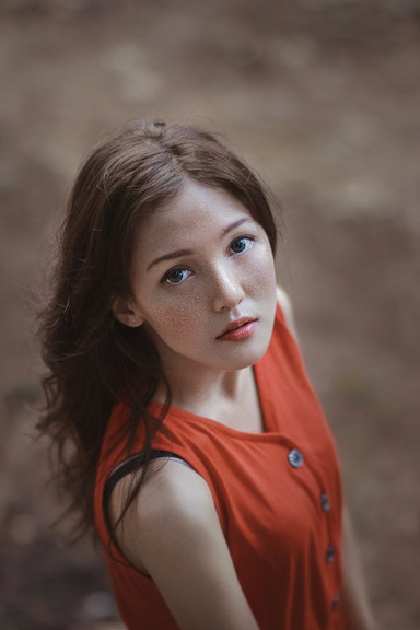 I like it other than the really unnatural looking freckles. They looks splotched on her skin with really bad makeup. Other than this it is a beautiful photo, I love the lighting.