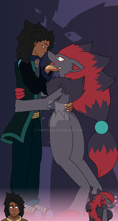 A year ago, Mila had three free hours in her schedule. She ventured in the "Axe Majeur de Cergy" park. At one point, she lost herself and a green animal with a human posture comes towards her. At first scared, she tried to push him away with a stick (ridiculous defense). The animal pushes the stick, then sniff her whole body and then sit in front of her. Mila later learns that the animal can speak, is called Ralyoth and can change into semi-human (i.e. it has the body of a human but its ears are on his head, his hair remains green and his tail is still present). Since that day, Mila often goes to the park to spend time with Ralyoth. She teaches him how to dress, how to behave like a human being, how to interact with others, while hiding his true identity.