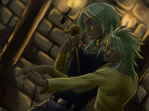 It'sĀ Yu Gi Oh! commission with the characters Hiroto Honda (in the middle) Ryou Bakura and Yami Bakura (right and left)