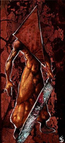 My newest Silent Hill fan art, for the 50th deviation. Yes, everybody knows him, it's Red Pyramid Thing, a.k.a Pyramid Head, from Silent Hill 2. A mix between Silent Hill 2 and Silent Hill 3, with some industiral details in background.Note : This is just an artistic fan art, there is no links with the original story of Silent Hill 2. Pyramid Head and Silent Hill are copyrights of Konami.