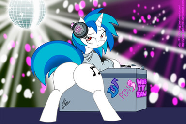 another DJ unicorn background pony. Many fans speculate he harbors a crush on Vinyl.