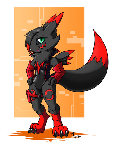 #anthro #blackandred #chibi #digimon #digimonoc #female #fluffy #fluffytail #fur #furry #furryfemale #leotard #renamon #darkrenamon #renamonoc #runethedarkrenamon