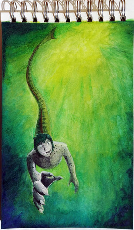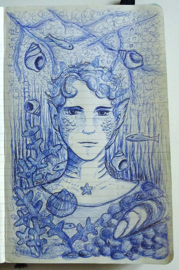 Wanted to make a contribution to the already phenomenal collection of merman/Mermaids on the internetThis is a leatherback Sea-turtle merman snacking on moon jellyfish with somewhat aged south-east asian features(or at least that was the look I was going for. Tell me if it worked.)