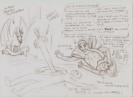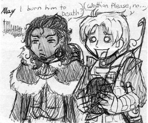 Sleepy Irony Explanation!: Our long-running 4th Edition campaign prominently features Corellon and Bahamut due to the nature of two characters' faiths, with events seemingly leading up to a return of Mr. Shadowlord (since we miss him. .__.). So in the end, it seems like we both have the same trio of godliness all tangled up in our affairs. x3 ...I'm really easily amused. xD