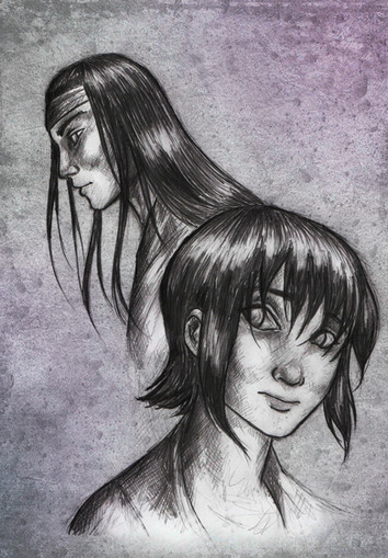 The faces of the three main characters in an original manga storyline I've had in the works for quite awhile. It's called 'Were' (as in 'werewolf', not 'were you there?' ^~; ) and is about were-creatures of various kinds.From left to right in this picture: