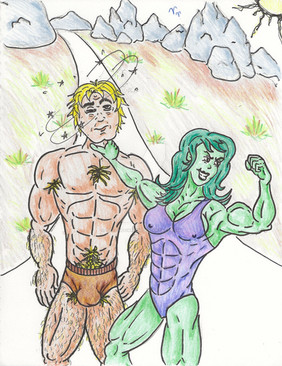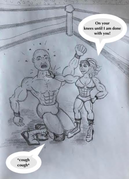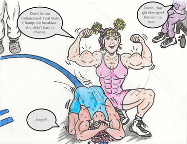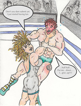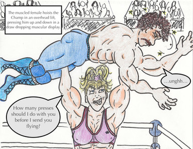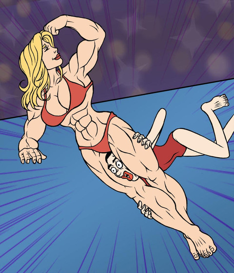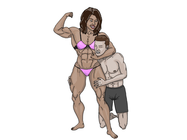 The female bodybuilding champ hits the most muscular pose while submitting the male champ in a head scissors.Related content