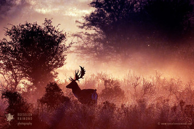 On an early autumn morning, everything just came together. Mist created a fantastic atmosphere and a beautiful rising sun almost completed the picture. Almost. Just the model was missing. And as on command, a proud buck entered this sparkling fairytale. He positioned himself exactly in the right place and waited patiently until my last doubt disappeared and I finally took my camera. But hey; no fox!