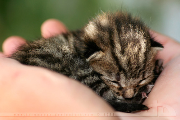 reminds me of the five day old kitten that we found (the mother and the rest of the kittens were hit by a car :C) She lived for about... two or three years and then randomly disappeared