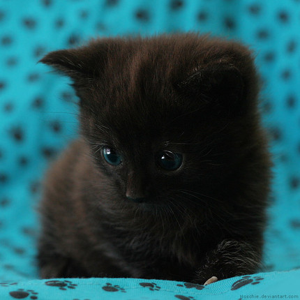 Oh my goodness! What a cute little baby kitten! That's what my two black cats looked like when I got them. Β