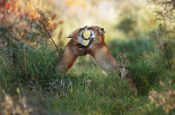 Incredible pose of the fox at the right, very athletic (or... ahm... I'm not sure if that's good, but if you understand, it's fine)