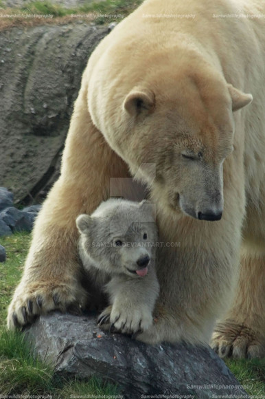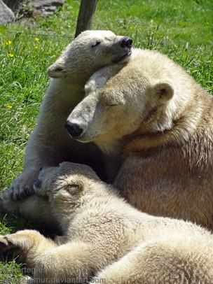 Such a beautiful picture! I adore mama bear's loving gaze and protective hold, as well as baby bear pawing his mother's face as a sign of affection.