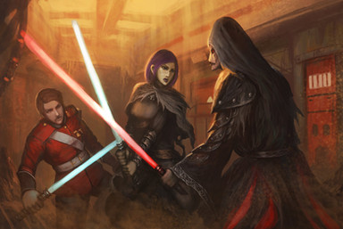 From the way it's drawn, it looks like the Sith are taking a final heroic last stand against the oppressive Jedi. With a young and inexperienced apprentice already set to fight while his more calm and experienced master trying to come up with a game plan.Β