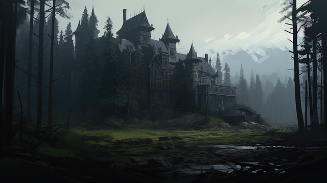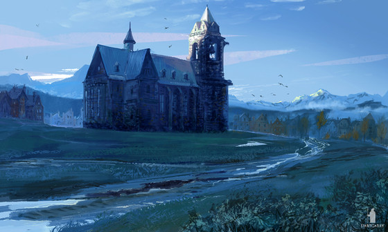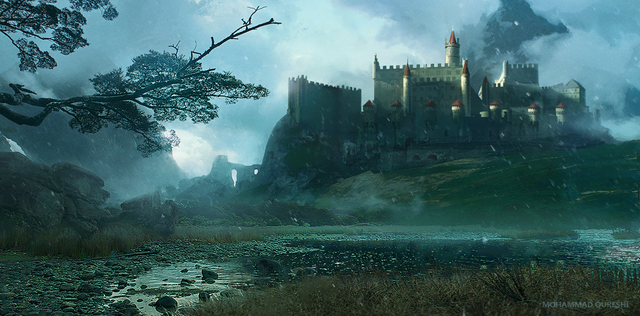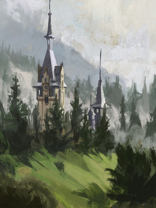 #castle #fog #forest #nature #river #scenery #sketch #snow #winter #ancient #architecture #conceptart #environment #landscape #mountains #pinetree #speedpainting