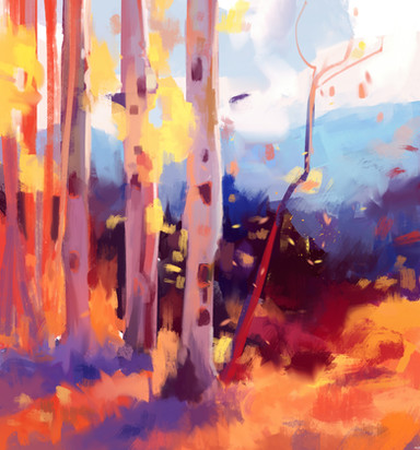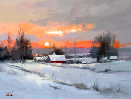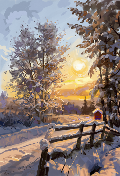 #clouds #daily #digital #enviroment #field #forest #landscape #scenery #sketch #sky #snow #speedpainting #study #sunset #tree #village #winter