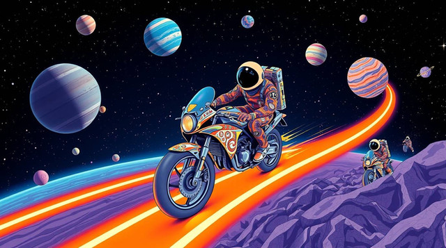 #ai #astronaut #background #bike #biker #desktop #motorcycle #nasa #outerspace #space #spaceman #stars #surreal #wallpaper #sciencefiction