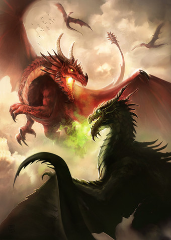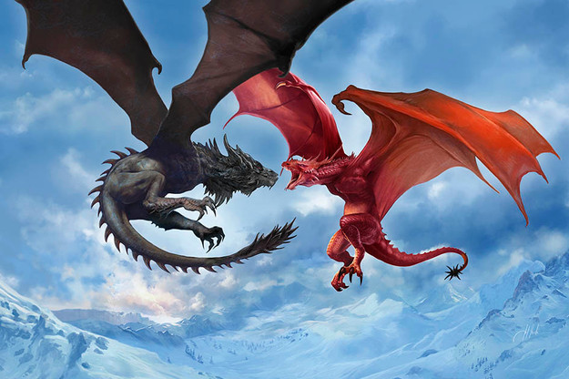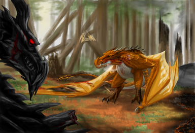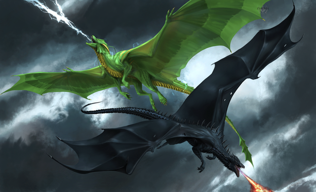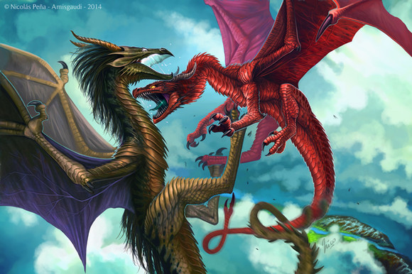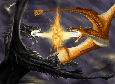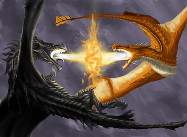 WARNING: the full file is really huge (>7MB)Commission for - his dragon Gramzon battling Odahviing above the Throat of the World.