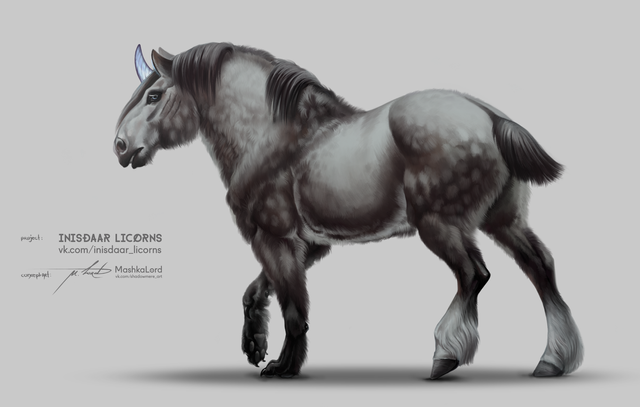 Thank you! Even if I usually keep my equines down-to-earth, this one represents a metaphor (and white is a traditional color for a unicorn) so I felt he'll need to be a little more stylised, flowing and dramatic, more shiny and silver than plain grey.