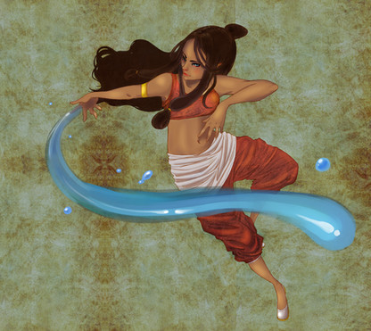 I've always really liked the idea of island/tribal water benders! It's exotic and sexy x3 Love the concept!