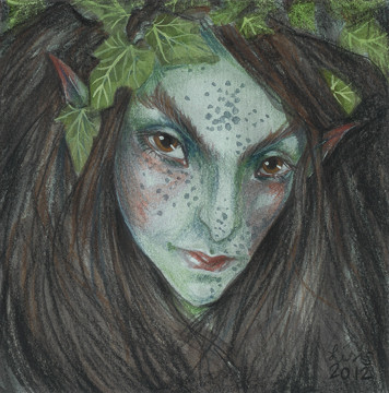 pretty! I like how the leaves in her hair compliment her green eyes and her wide face looks warm and welcoming.