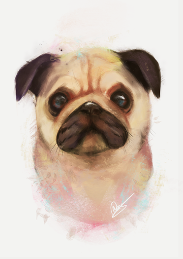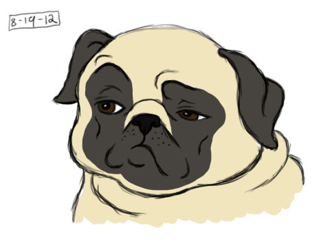 Saint Pug is my favorite saint! He is the saint of adorable wrinkly nommy faces. In all seriousness this is totally cute and I hope you post more traditional art in the future. D: