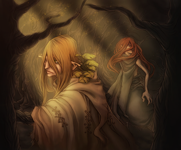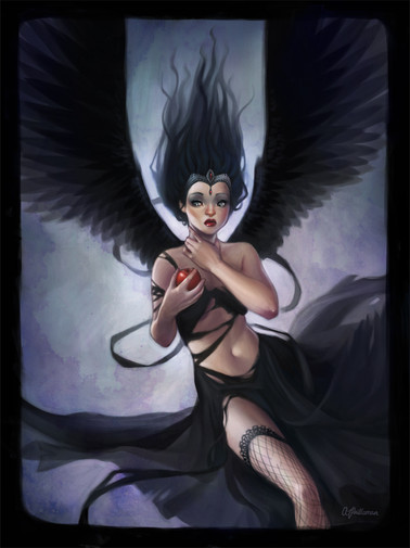 I really am enjoying everything about this piece... the way you've created the shadows and detailing in the back really have me wanting to find more and more. The expressions are my favorite part - especially the innocent way Temptation looks. Really nicely done!