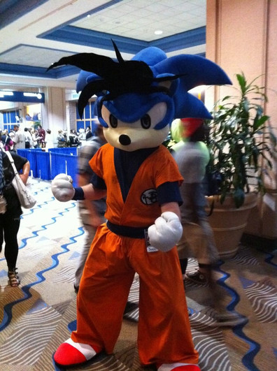 Te kedo chivo el cosplay de Sonic y aki listo para correr jojojo