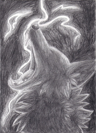 The character displayed is my wolf fursona, Thunder. I love to watch storms raging in the sky, and it's literally been storming all week this week so I was inspired to finish this inked drawing. C: