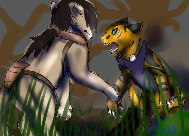 Sharkfang scaring the fur off of Reset (My kitty fursona... *** I am not a furry***)Sharkfang belongs to me and so does Reset