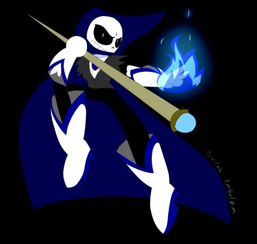 [yeah I change the color of his shirt a bit, if you don't like it I could change it back]Blu or his original name Underspirit Sans is the strongest hero(more likely the first those of you know what he was years ago). Though they say that he's the strongest but he's not that strong to his kind with his Thunder orb crack and he was weak. Blu was picked on at his previous school since no skeletons ever existed. He pretty much got used to the bullies and all the harsh ways they do to him; therefore, it made him stronger. But he knows they won't leave him alone so he ran off to the forest. He met Demarah in the forest sitting on the broken tree. He enjoyed having conversations with her cause she interests him. But one day Blu went back to the forest to talk to Demarah again, but as he looked around she was never there. A few years later, He moved to Earth for his graduation (or for a college way) to help people. He wasn't a hero until he met Chaos.