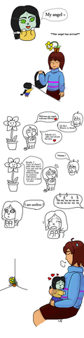 Idk why I thought this would be funny.I made a short comic with one of my Undertale AU’s with Meditate Sans and his Frisk.