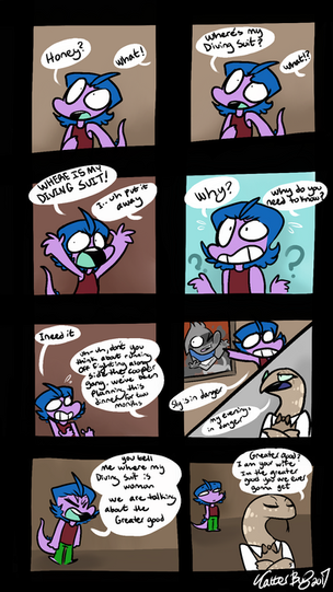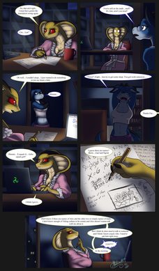 The book warned ya.I did the sketch on my sketchpad, but I wanted to finish the rest on digital. What's happening is that Jaya was trying to put Sarah in a day care so she can go to her yoga classes, but the snakes who work there would not accept anyone with "man-like" features. Jaya got an idea to sent Sarah to the day care for babies. Jaya wrapped her feet so that Nelcoma or any other snakes will notice as long as she tells them to not unfold her.