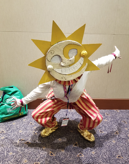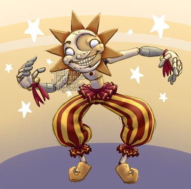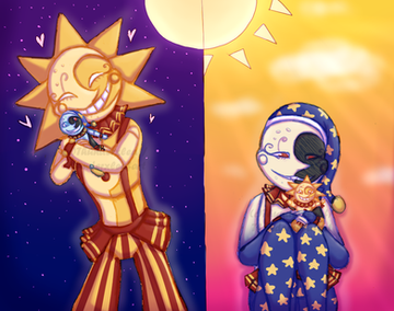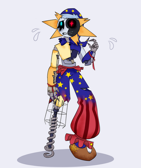 "Eclipse", in my interpretation, is actually the result of a malfunction. The Daycare Attendant was designed with two modes; Daytime (Sun), and Nighttime (Moon), which could easily be switched between once a certain light (or lack there of) threshold was met. The problem began when Strobe Lights were introduced. Their body was bombarded with switch commands to the point where it just... well, it broke.And they ended up stuck somewhere in-between Day and Night mode.