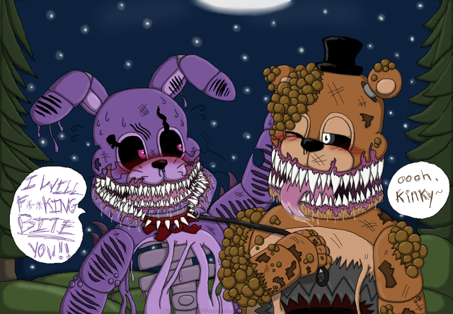 This came out so much better than I thought it would! I am SO happy! XDIn case you can't read what the text in purple says there, it says: "Isn't this what you've waited for, Fredbear...?"