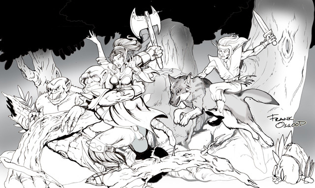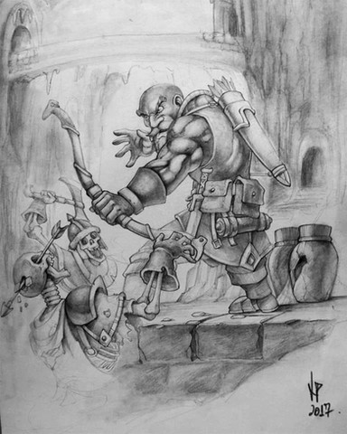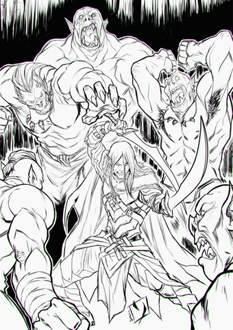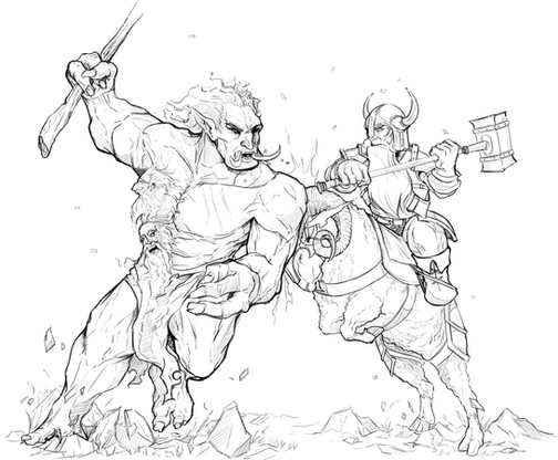 #rpg #barbarian #blackandwhite #commission #dwarf #elf #fantasy #monster #ogre