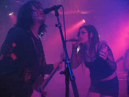 I love KMFDM. How long did they play for? I have never seen her singing for them though.