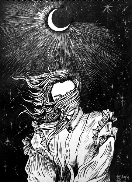 I love the contrast between the ink washes, and the pencil on the face & flower petals - so simple, yet it's so striking. The whole image has such a soft, evocative feel, it's very beautiful