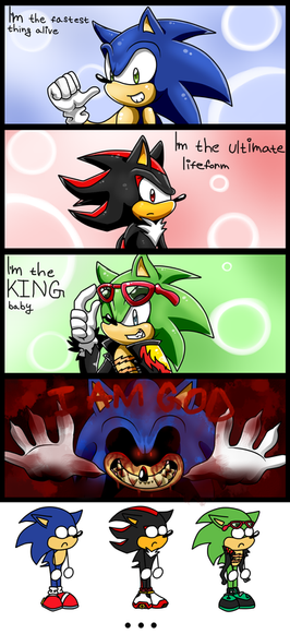 Ha! Ha! Ha! that's so true in the Sonic fan base. And that's hilarious, most sonic fans make fan characters to make them related or date canon characters in the series, and also their fan characters are over powered. this comic makes sense of Sonic fan characters.